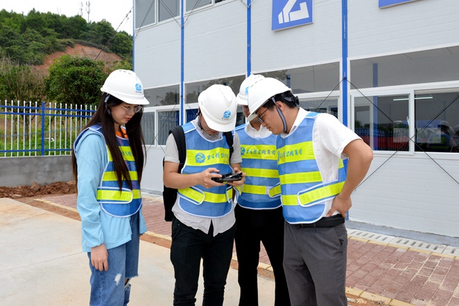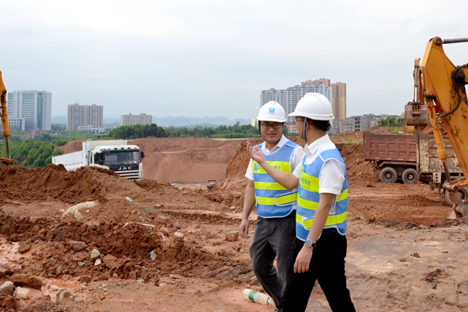 项目负责人在梧州市第十六中学项目场地开展现场管理工作