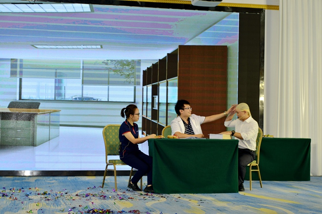 剧目《中国好女婿》围绕“规范专业”的集团核心价值观, 通过一个“招女婿”的招标项目,幽默风趣地展现出云之龙人严格执行行业标准,严把内控关的行事风格。