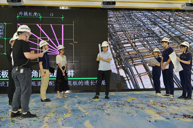 剧目《看全咨》,把现场观众带回了工地施工现场。面对困难,他们从未退缩,坚持把事情做成、把事情做好,坚守“结果导向”的核心价值观,运用扎实的专业知识解决工程难题。在剧里,他们获得业主好评,在现实工作中,他们仍旧获得业主夸赞。