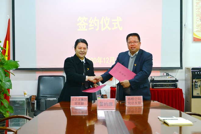 为提高党建工作水平,向优秀党组织靠拢,2020年12月31日,云之龙集团党支部与南宁路桥公司党总支部开展党组织共建座谈会并签订了共建合作协议。通过此次合作,探索和构建起双方党组织互联互动、互促共进、共促发展的党建一体化工作格局,以高质量党建促进各项工作稳步发展。