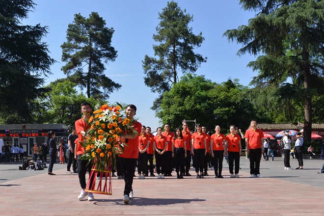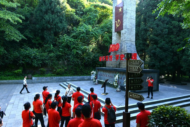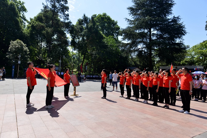 在红军烈士纪念碑前,党支部敬献花篮,全体党员重温入党誓词,庄严宣誓,一句句铿锵誓言回荡在神州大地。
