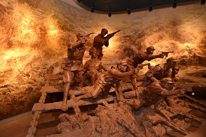 走进遵义会议陈列馆,看着栩栩如生的石雕、陈旧发黄的照片以及现场视频,党员们仿佛置身于那段枪林弹雨、血雨腥风、硝烟弥漫的烽火岁月。