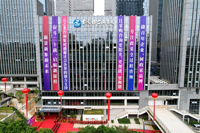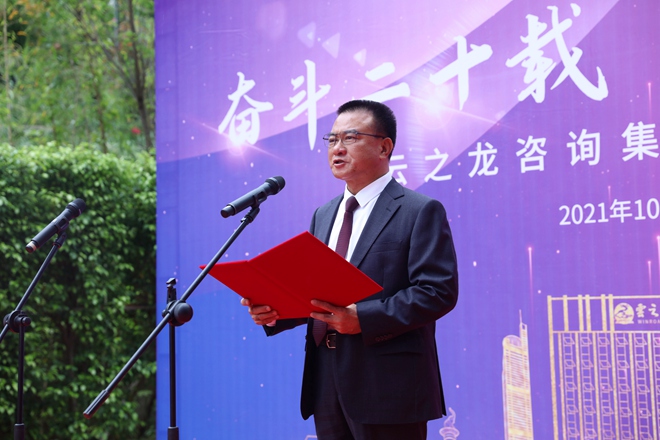 云之龙集团董事长梁荣森在乔迁仪式上致辞,他说:“云之龙二十年的发展历程,离不开社会各界人士的关心和支持,离不开全体云之龙人的不懈努力。集团新大楼的建成,凝聚了全体云之龙人的心血,是大家多年来的奋斗成果。二十年来,我们在这片热土上,树立了‘专注政采全过程咨询’的金字招牌。回望过去的路,成绩满满无比自豪;眺望未来的路,充满挑战但前景光明。下一个二十年,希望我们不忘初心,继续奋斗,再创辉煌。”