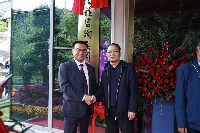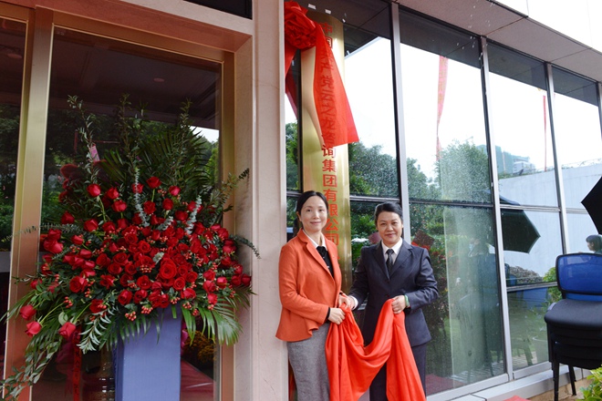 吉时12:08,鼓声喧天,礼炮齐鸣,瑞狮欢腾。青秀区工商联机关党委书记、工商联常务副主席、统战部副部长杨伊莉与云之龙党总支部书记王镱霖为“中共云之龙咨询集团有限公司总支部委员会”揭牌。同时,原致公党中央副主席、广西政协副主席、致公党广西区委主委黄格胜与梁荣森董事长在集团正门揭牌。