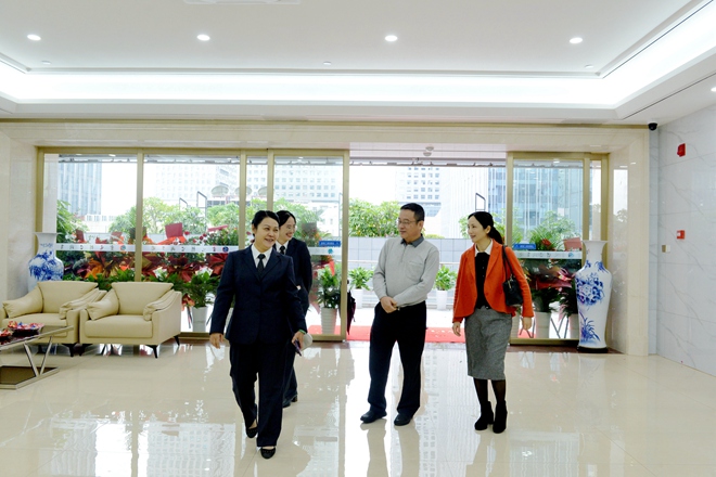揭牌仪式后,集团领导带领各位嘉宾参观集团大厦。新的办公室宽敞明亮,办公设备高端大气,配有企业文化室、多功能培训室、多功能会议室。新的开标大厅、电子评标室、双向系统评标室等配备了先进的开标、评标系统,更加高端舒适。