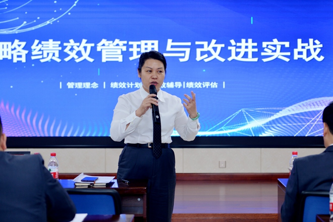 在课程结束后,集团总裁王镱霖发表讲话。她说,本次课堂座无虚席,让我看到了大家学习的热情。现在行业竞争日益激烈,我们更要有主动持续学习的意识。集团实施战略绩效管理,是要让优秀的员工脱颖而出,实现价值,为集团未来二十年的发展做好铺垫。