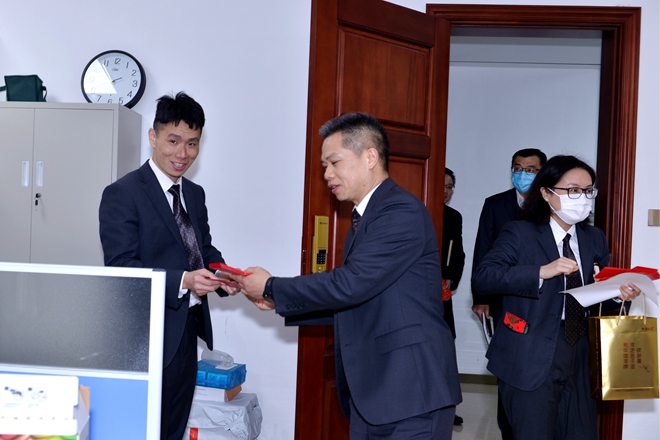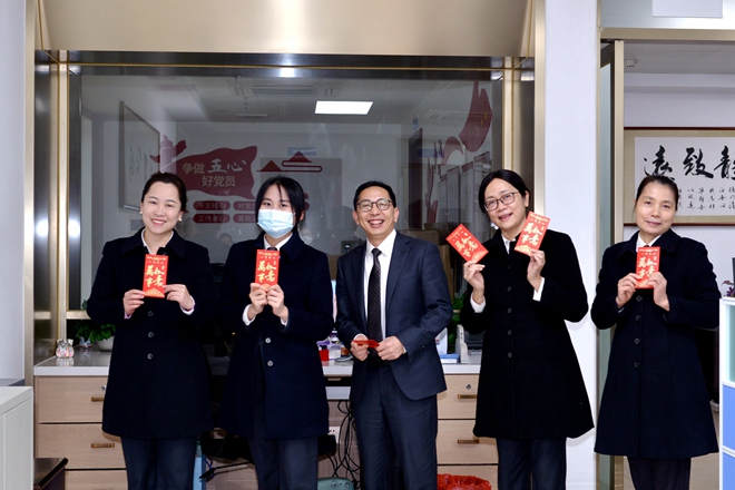 2022年2月7日,云之龙咨询集团总裁王镱霖带领集团高层领导到各个部门给大家拜年,派送新年开工红包。王镱霖总裁叮嘱大家做好疫情防控工作,关注自身身体健康状况。她详细了解各个部门人员的到岗情况,勉励大家铆足干劲,以最高的效率和最佳的姿态投入到工作当中,谱写集团高质量发展新篇章。