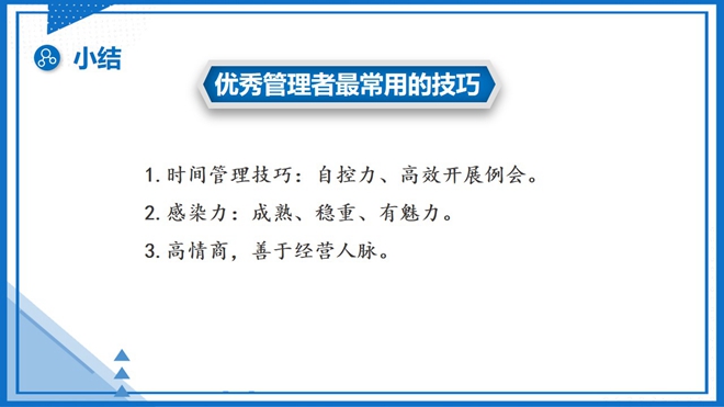 课程内容围绕优秀管理者应该具备的五大人格魅力、五项素质能力、最常用技巧以及管理者应重视的管理意识问题等内容展开。课上,还为大家播放了多个视频案例,通过生动的视频解读其中管理思维。