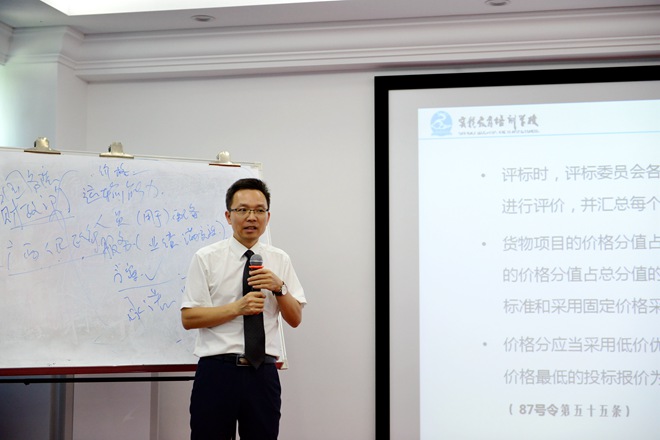 第二、三阶段则由集团副总裁莫国华、韦明剑、梁汉斌及招标部资深项目经理和项目助理为新员工们讲解货物、服务类项目的法律法规、实务操作、案例分析等知识,讲师们分别按照项目开展全过程进行授课,从编制招标文件前期、编制招标文件至售卖前、招标文件售卖至开标前一天、接标、抽评委及开标等内容层层递进,环环相扣。每个环节学习相应的法律法规,并结合实务操作、案例分析,保证新员工对项目执行的每个流程都有所了解,并能运用到实际工作中。