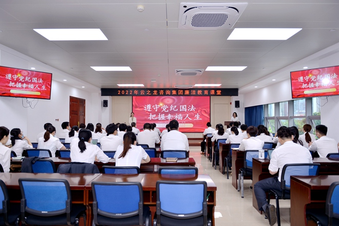 云之龙十分重视廉洁文化教育,定期开展廉洁教育课堂。在集团总部党建文化长廊中,设置廉洁文化宣传栏,展示廉洁文化,让员工在耳濡目染、潜移默化中常怀律己之心,养成廉洁品格。