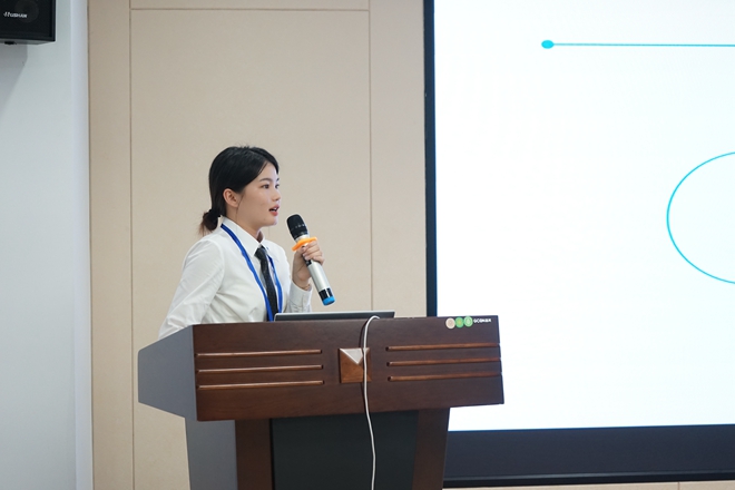 此次学习成果汇报会主要以情景模拟的形式进行,精英班学员扮演项目人员或市场人员角色,向客户介绍集团业务产品。学员们逐一登台,尽情展示自己入职一段时间后的所学成果。会上还设置了精彩的答辩环节,评委针对学员汇报的内容进一步提问,考验学员的专业知识掌握程度以及临场应变能力。