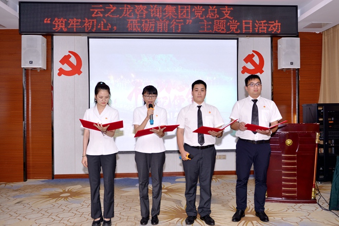 办公室党支部书记毛麒盛带领党员重温入党誓词。一句句铿锵誓词不断激励和鼓舞每一位党员同志,坚定力量信念,时刻保持初心,坚守使命。
