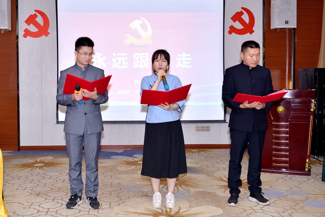 此次活动,各小组还准备了精彩绝伦的节目,诗朗诵《不忘初心》《永远跟党走》、情景剧《红心向党旗》、舞蹈《万泉河水清又清》、手语舞《万疆》,为大家带来一趟赏心悦目的艺术之旅,更打造了一次激荡人心的党史课堂。通过艺术的形式,党员们重温百年党史,赓续红色血脉,汲取奋进力量。