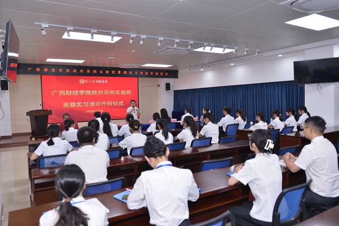 2022年7月5日,广西财经学院财政与公共管理学院19级政府采购实验班暑期实习开班仪式在云之龙咨询集团一号大厅举办,标志着实验班学生在云之龙为期两周的实习活动正式开启。