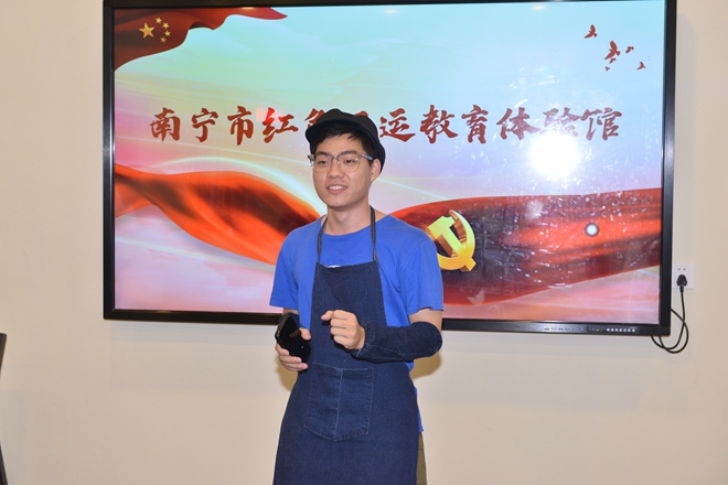 云之龙办公室党支部书记毛麒盛:在沉浸式剧目体验中,我扮演了一回酒馆老板,一边要经营酒馆,一边安抚青年学生,还要和国民党兵斗智斗勇拖延时间,争取与接头人会面,身临其境地感受到南宁解放前期的动荡社会。但是我们共产党员、进步青年、工人仍然毫不畏惧地和国民党反动势力作斗争,保护了南宁电厂、保护了革命火种,正是因为有了这些人的努力,成就了我们党生生不息、顽强不屈的革命精神。