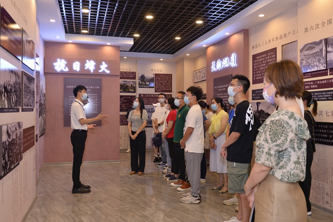 当天活动中,大家跟随讲解员首先参观了一楼展陈馆,通过解说、文字、图片、视频等回顾中国共产党的伟大开端、山重水复、抗日烽火、天翻地覆四个篇章,感受红色历史,传承党史精神。