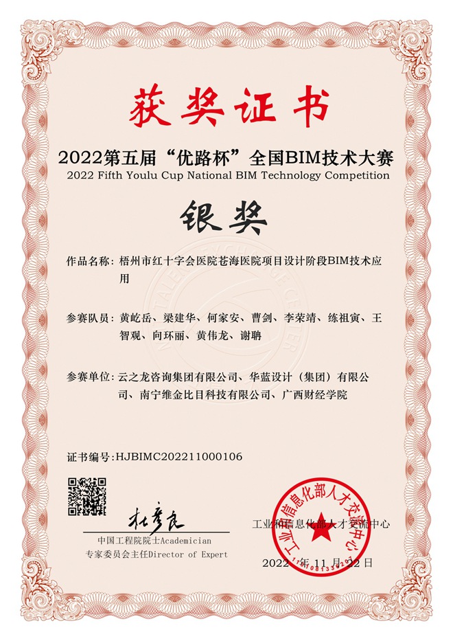 荣获第五届优路杯全国BIM技术大赛“银奖”