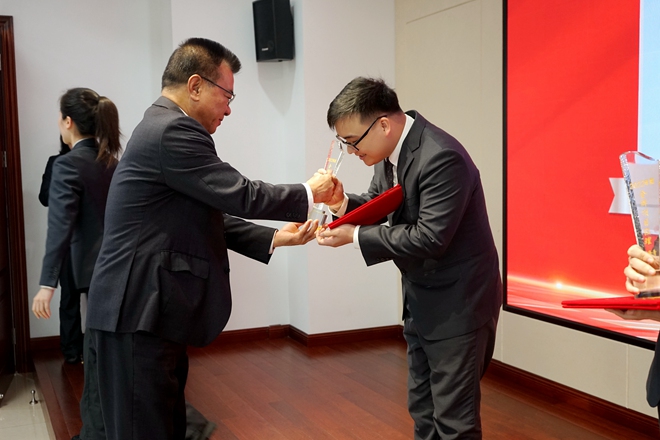 云之龙咨询集团总裁办总经理刘斯娜宣读获奖名单,梁荣森董事长、王镱霖总裁以及副总裁莫国华、韦明剑等高层领导为获奖人员颁奖。
