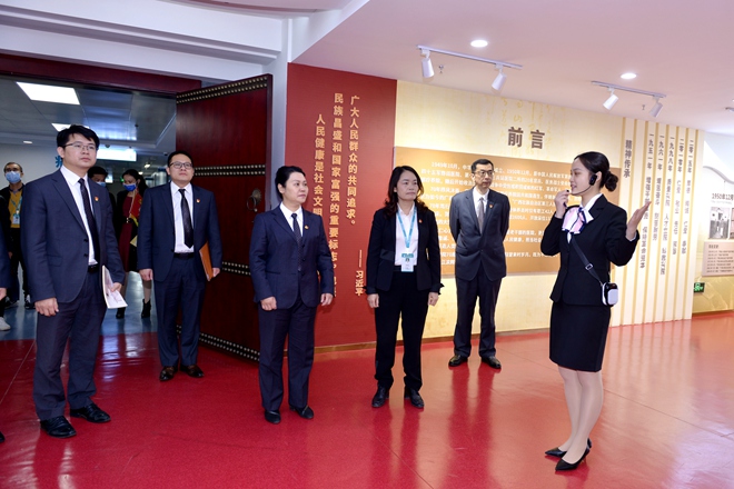 在党日活动中,马金玉书记带领云之龙党员参观了医院院史馆,了解广西江滨医院70多年的历史和取得的丰硕成绩。广西江滨医院创建于1950 年 12 月,70多年来一直坚持革命传统,救死扶伤,治病救人,现已发展成为集医疗、康复、科研、教学于一体的国家三级甲等老年病专科医院,成为全国康复领域行业知名、中西南地区独树一帜、影响力辐射东盟的大型医疗、康复和保健中心。