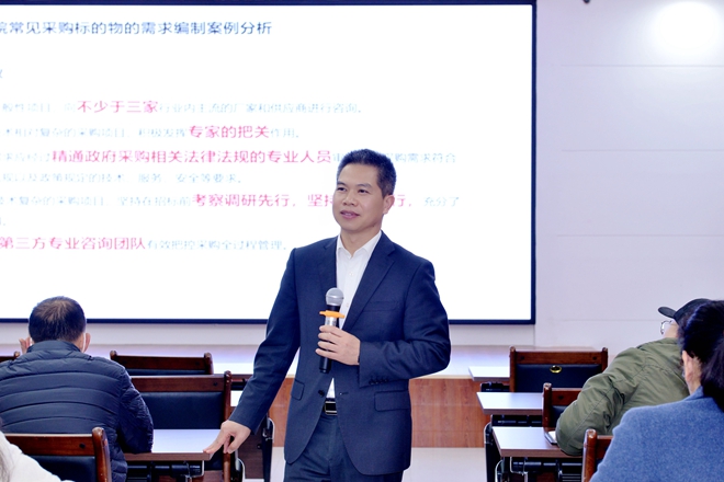 当天下午,广西江滨医院开展“清廉医院”主题宣讲培训,邀请到云之龙咨询集团副总裁、云之龙学校校长韦明剑为大家讲授政府采购相关法规知识。