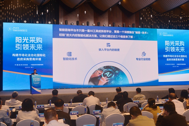 云之龙咨询集团作为政府采购行业的资深参与者,政府采购数智化发展的积极探索者和践行者,总裁王镱霖受主办方邀请在主会场发表《一站式智能咨询平台赋能“阳光采购”》主旨演讲。