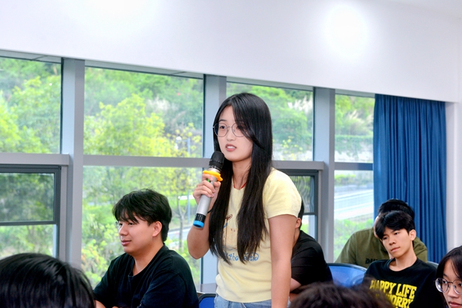 在自由交流环节,学生们积极发言,对具备丰富经验的胡冬梅老师提问,共同探讨造价行业的未来发展方向和就业前景等。