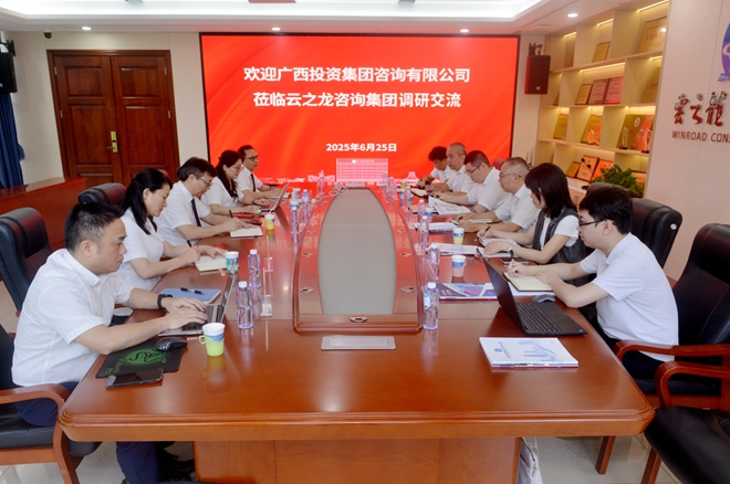 2025年6月25日,广西投资集团咨询有限公司(以下简称“广投咨询”)副总经理陈弘志率队到云之龙咨询集团调研交流。云之龙副总裁莫国华等管理者参加交流会议。双方在交流中碰撞思想火花,共同探讨咨询发展新路径。