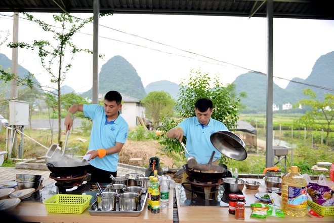 紧张刺激的游戏过后,大家开始体验乡村“慢生活”,一起在田园间一起做一顿美味佳肴。伙伴们纷纷拿出看家本领,做了一桌桌家乡美味与大家共享。