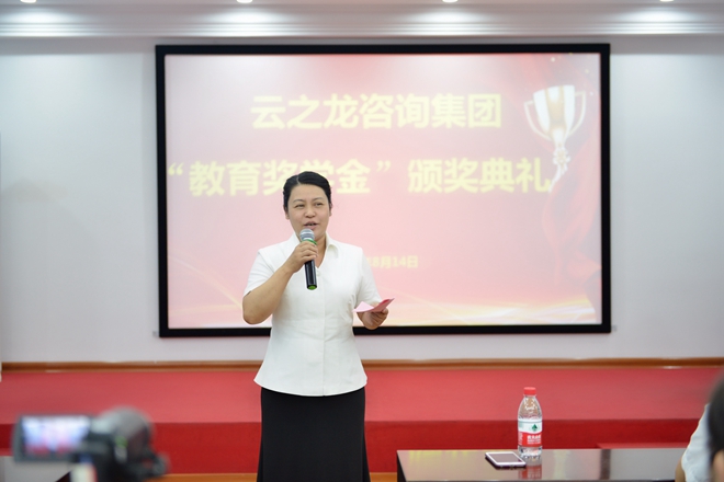 颁奖典礼上,集团总裁王镱霖发表讲话,她说,首先要感谢云之龙人对集团发展的默默奉献,感谢“龙二代”对父母工作的理解与支持。其次是要祝福即将进入新学堂的孩子们,希望你们努力学习,像父母一样成为社会栋梁。云之龙集团的大门永远向优秀的“龙二代”们敞开,欢迎你们学成归来,加入到云之龙团队中。