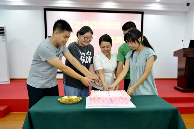 分享成功的喜悦,王总裁与孩子们一起切下蛋糕