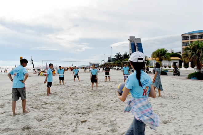 团建游戏过后,第一分队的沙滩排球开始啦。